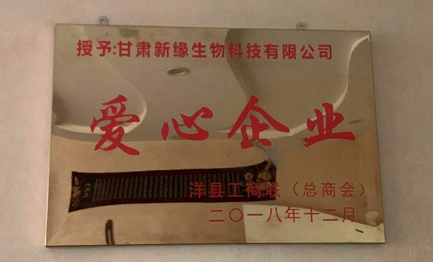 為了感謝申總的大愛無私,洋縣工商聯(lián)(總商會(huì))授予申總個(gè)人愛心使者稱號(hào),授予甘肅新緣生物科技有限公司愛心企業(yè)稱號(hào)。