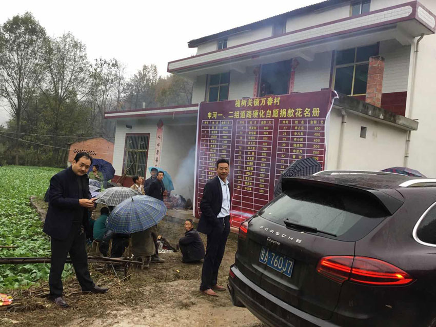 盡管天下著小雨,氣溫也只有七八度,但是申總還是冒著雨驅(qū)車前來參加開工儀式,硬化之前的土路一下雨便是淤泥深陷,非常不利于出行。